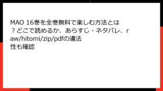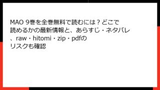 MAO MAO 9巻を全巻無料で読むには?どこで読めるかの最新情報と、あらすじ・ネタバレ、raw・hitomi・zip・pdfのリスクも確認