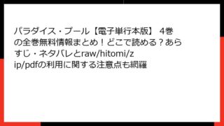 パラダイス・プール【電子単行本版】 パラダイス・プール【電子単行本版】 4巻の全巻無料情報まとめ!どこで読める?あらすじ・ネタバレとraw/hitomi/zip/pdfの利用に関する注意点も網羅 パラダイス・プール【電子単行本版】 4巻 詳細あらすじ 『パラダイス・プール』は、冴えない大学生・大隅晋兵がプールバイトを通じて美女たちに囲まれ、共同生活の中で次々とエロティックなハプニングに巻き込まれるハーレムストーリー。4巻では、前巻か... 2025.11.26 パラダイス・プール【電子単行本版】青年マンガ