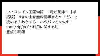 ウィズレイン王国物語 ~竜が花嫁~【単話版】 ウィズレイン王国物語 ~竜が花嫁~【単話版】 4巻の全巻無料情報まとめ!どこで読める?あらすじ・ネタバレとraw/hitomi/zip/pdfの利用に関する注意点も網羅 ウィズレイン王国物語 ~竜が花嫁~【単話版】 4巻 詳細あらすじ ファンタジー転生ものの魅力が詰まった本作『ウィズレイン王国物語 ~竜が花嫁~【単話版】』の4巻(第4話)。竜の前世を持つ少女エルナと、勇者の転生者である国王クロスの絆が、切な... 2025.11.26 ウィズレイン王国物語 ~竜が花嫁~【単話版】少女マンガ