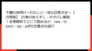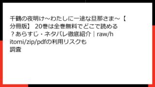 千鶴の夜明け~わたしに一途な旦那さま~【分冊版】 千鶴の夜明け~わたしに一途な旦那さま~【分冊版】 20巻は全巻無料でどこで読める?あらすじ・ネタバレ徹底紹介|raw/hitomi/zip/pdfの利用リスクも調査