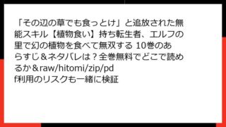 「その辺の草でも食っとけ」と追放された無能スキル【植物食い】持ち転生者、エルフの里で幻の植物を食べて無双する 「その辺の草でも食っとけ」と追放された無能スキル【植物食い】持ち転生者、エルフの里で幻の植物を食べて無双する 10巻のあらすじ&ネタバレは?全巻無料でどこで読めるか&raw/hitomi/zip/pdf利用のリスクも一緒に検証