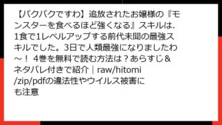 【パクパクですわ】追放されたお嬢様の『モンスターを食べるほど強くなる』スキルは、1食で1レベルアップする前代未聞の最強スキルでした。3日で人類最強になりましたわ~! 【パクパクですわ】追放されたお嬢様の『モンスターを食べるほど強くなる』スキルは、1食で1レベルアップする前代未聞の最強スキルでした。3日で人類最強になりましたわ~! 4巻を無料で読む方法は?あらすじ&ネタバレ付きで紹介|raw/hitomi/zip/pdfの違法性やウイルス被害にも注意