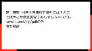 包丁無宿 包丁無宿 44巻全巻無料で読むには?どこで読めるか徹底調査|あらすじ&ネタバレ・raw/hitomi/zip/pdfの危険も暴露 包丁無宿 第44巻 詳細あらすじレビュー:料理界の激震と陰謀の渦中 長年愛されてきた料理漫画の金字塔、『包丁無宿』。主人公・暮流助の波乱万丈な板前人生が、毎巻ごとに新たなドラマを繰り広げます。第44巻では、料理界の頂点に君臨する者たちの野望... 2025.11.28 包丁無宿青年マンガ