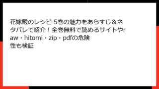 少女マンガ 花嫁殿のレシピ 5巻の魅力をあらすじ&ネタバレで紹介!全巻無料で読めるサイトやraw・hitomi・zip・pdfの危険性も検証 花嫁殿のレシピ 5巻 切ない夏休み前の心揺らぐ展開を徹底解説 皆さん、こんにちは! ラブコメ好きの漫画ブロガーです。今回は、大葉ノコ先生と君原藍先生のタッグによる人気作『花嫁殿のレシピ』の5巻をピックアップ。親の決めた婚約から始まるお試し同... 2025.11.28 少女マンガ花嫁殿のレシピ