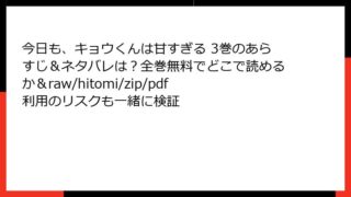 今日も、キョウくんは甘すぎる 今日も、キョウくんは甘すぎる 3巻のあらすじ&ネタバレは?全巻無料でどこで読めるか&raw/hitomi/zip/pdf利用のリスクも一緒に検証 今日も、キョウくんは甘すぎる 3巻:心温まる甘いラブコメの深みへ こんにちは、漫画好きの皆さん! 今日のブログでは、ビブラハット先生の人気ハートフルラブコメディ『今日も、キョウくんは甘すぎる』の3巻について、詳しくあらすじを掘り下げてお届け... 2025.11.30 今日も、キョウくんは甘すぎる女性マンガ