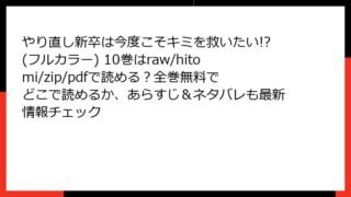 やり直し新卒は今度こそキミを救いたい!?(フルカラー) やり直し新卒は今度こそキミを救いたい!?(フルカラー) 10巻はraw/hitomi/zip/pdfで読める?全巻無料でどこで読めるか、あらすじ&ネタバレも最新情報チェック