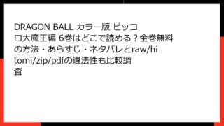 DRAGON BALL カラー版 ピッコロ大魔王編 DRAGON BALL カラー版 ピッコロ大魔王編 6巻はどこで読める?全巻無料の方法・あらすじ・ネタバレとraw/hitomi/zip/pdfの違法性も比較調査 DRAGON BALL カラー版 ピッコロ大魔王編 6巻:悟空VSピッコロ、運命の決戦の幕開け こんにちは、ドラゴンボールファン必見のブログへようこそ! 今日は、鳥山明の名作『DRAGON BALL』のカラー版、ピッコロ大魔王編の第6巻につ... 2025.12.02 DRAGON BALL カラー版 ピッコロ大魔王編少年マンガ