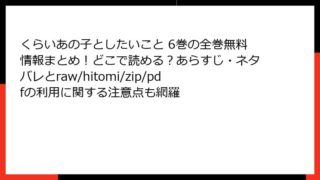 くらいあの子としたいこと くらいあの子としたいこと 6巻の全巻無料情報まとめ!どこで読める?あらすじ・ネタバレとraw/hitomi/zip/pdfの利用に関する注意点も網羅 『くらいあの子としたいこと』6巻 詳細あらすじレビュー:新年の波乱と甘酸っぱいバレンタイン みなさん、こんにちは! ラブコメ好きのブログ主です。今回は、碇マナツ先生の人気作『くらいあの子としたいこと』6巻のあらすじを、たっぷり詳しくお届けし... 2025.12.03 くらいあの子としたいこと少年マンガ
