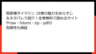 警部補ダイマジン 警部補ダイマジン 18巻の魅力をあらすじ&ネタバレで紹介!全巻無料で読めるサイトやraw・hitomi・zip・pdfの危険性も検証 警部補ダイマジン 18巻:影の陰謀が深まるサスペンスの渦中 こんにちは、漫画好きのブロガーです。今日のレビューは、連載中の人気サスペンス漫画『警部補ダイマジン』の18巻について。原作のリチャード・ウーと作画のコウノコウジによるこの作品は、ダ... 2025.12.04 警部補ダイマジン青年マンガ