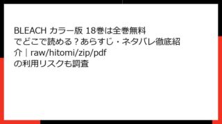 BLEACH カラー版 BLEACH カラー版 24巻はどこで読める?あらすじやネタバレ、全巻無料で読む方法も検証(rawやhitomi、zip/pdf利用のリスクも解説)