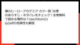 僕のヒーローアカデミア カラー版 僕のヒーローアカデミア カラー版 36巻のあらすじ・ネタバレをチェック!全巻無料で読める場所は?raw/hitomi/zip/pdfの危険性も解説 僕のヒーローアカデミア カラー版 36巻:激闘の渦中、ヒーローたちの覚悟と炎の対決 こんにちは、ヒロアカファン必見のブログへようこそ! 今回は、堀越耕平先生の傑作『僕のヒーローアカデミア』のカラー版36巻について、詳しくあらすじを掘り下げて... 2025.12.05 僕のヒーローアカデミア カラー版少年マンガ
