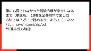 少女マンガ 誰にも愛されなかった醜穢令嬢が幸せになるまで【単話版】 10巻を全巻無料で楽しむ方法とは?どこで読めるか、あらすじ・ネタバレ、raw/hitomi/zip/pdfの違法性も確認 醜穢令嬢アメリアの運命が一変!『誰にも愛されなかった醜穢令嬢が幸せになるまで【単話版】 10巻』詳細あらすじレビュー こんにちは、漫画好きのブロガーです! 今日は、誰もが胸キュン必至のシンデレラ・ストーリー、『誰にも愛されなかった醜穢令嬢が... 2025.12.05 少女マンガ誰にも愛されなかった醜穢令嬢が幸せになるまで【単話版】