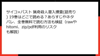 サイコ×パスト 猟奇殺人潜入捜査(話売り) サイコ×パスト 猟奇殺人潜入捜査(話売り) 17巻全巻無料で読むには?どこで読めるか徹底調査|あらすじ&ネタバレ・raw/hitomi/zip/pdfの危険も暴露
