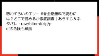 少女マンガ 恋わずらいのエリー 6巻全巻無料で読むには?どこで読めるか徹底調査|あらすじ&ネタバレ・raw/hitomi/zip/pdfの危険も暴露 恋わずらいのエリー 6巻 詳細あらすじ:恋の甘さと波乱のバレンタイン 『恋わずらいのエリー』は、妄想全開のツイートが趣味の地味女子・エリー(市村恵莉子)と、学年一のイケメン・近江章のラブコメディ。5巻で両想いになり、ついに恋人同士となった二... 2025.12.06 少女マンガ恋わずらいのエリー