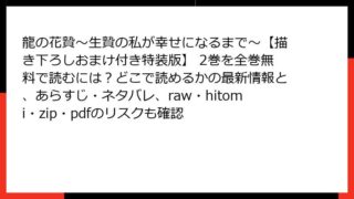 少女マンガ 龍の花贄~生贄の私が幸せになるまで~【描き下ろしおまけ付き特装版】 2巻を全巻無料で読むには?どこで読めるかの最新情報と、あらすじ・ネタバレ、raw・hitomi・zip・pdfのリスクも確認 龍の花贄~生贄の私が幸せになるまで~ 2巻 詳細あらすじレビュー こんにちは、漫画好きのブロガーです! 今回取り上げるのは、烏丸紫明さん原作、絹越まことさん作画の和風ロマンスファンタジー『龍の花贄~生贄の私が幸せになるまで~』の2巻特装版。... 2025.12.07 少女マンガ龍の花贄~生贄の私が幸せになるまで~【描き下ろしおまけ付き特装版】