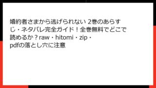 婚約者さまから逃げられない 婚約者さまから逃げられない 2巻のあらすじ・ネタバレ完全ガイド!全巻無料でどこで読めるか?raw・hitomi・zip・pdfの落とし穴に注意 この漫画・コミックを、raw/hitomi/zip/pdf/漫画バンクなどの海賊版サイトで読むことのリスクを、詳しく。単一のの見出しタグから始めて、ブログ記事形式で出力して。複数のタグを使用して、読み応えがあるように。HTMLで出力。やなど... 2025.12.08 婚約者さまから逃げられない少女マンガ
