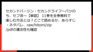 セカンドバージン・セカンドライフ~バツのち、セフ活~【単話】 セカンドバージン・セカンドライフ~バツのち、セフ活~【単話】 11巻を全巻無料で楽しむ方法とは?どこで読めるか、あらすじ・ネタバレ、raw/hitomi/zip/pdfの違法性も確認