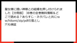 少女マンガ 聖女様に醜い神様との結婚を押し付けられました【分冊版】 38巻の全巻無料情報&どこで読める?あらすじ・ネタバレと共にraw/hitomi/zip/pdfの落とし穴も検証 聖女様に醜い神様との結婚を押し付けられました【分冊版】 38巻 あらすじ こんにちは、マンガ好きの皆さん! 今日は、赤村咲先生原作の人気コミカライズ作品『聖女様に醜い神様との結婚を押し付けられました【分冊版】』の38巻について、詳しくあらす... 2025.12.09 少女マンガ聖女様に醜い神様との結婚を押し付けられました【分冊版】