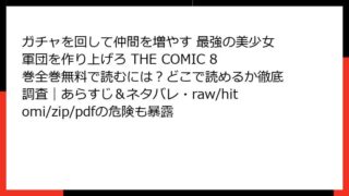 ガチャを回して仲間を増やす 最強の美少女軍団を作り上げろ THE COMIC ガチャを回して仲間を増やす 最強の美少女軍団を作り上げろ THE COMIC 8巻全巻無料で読むには?どこで読めるか徹底調査|あらすじ&ネタバレ・raw/hitomi/zip/pdfの危険も暴露