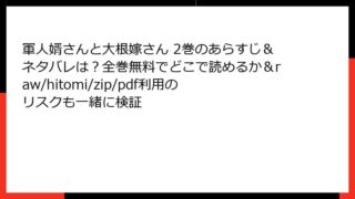 女性マンガ 軍人婿さんと大根嫁さん 2巻のあらすじ&ネタバレは?全巻無料でどこで読めるか&raw/hitomi/zip/pdf利用のリスクも一緒に検証 この漫画・コミックを、raw/hitomi/zip/pdf/漫画バンクなどの海賊版サイトで読むことのリスクを、詳しく。単一のの見出しタグから始めて、ブログ記事形式で出力して。複数のタグを使用して、読み応えがあるように。HTMLで出力。やなど... 2025.12.09 女性マンガ軍人婿さんと大根嫁さん
