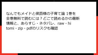 なんでもメイドと侯爵様の子育て論 なんでもメイドと侯爵様の子育て論 1巻を全巻無料で読むには?どこで読めるかの最新情報と、あらすじ・ネタバレ、raw・hitomi・zip・pdfのリスクも確認 なんでもメイドと侯爵様の子育て論 1巻:転生メイドの心温まる子育て奮闘記 こんにちは、マンガ好きの皆さん! 今日は、ファンタジー転生ものの中でも特にほのぼのとした魅力が詰まった作品、『なんでもメイドと侯爵様の子育て論 1巻』を徹底的に掘り下... 2025.12.12 なんでもメイドと侯爵様の子育て論女性マンガ