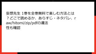 妄想先生 妄想先生 1巻を全巻無料で楽しむ方法とは?どこで読めるか、あらすじ・ネタバレ、raw/hitomi/zip/pdfの違法性も確認 妄想先生 1巻 詳細あらすじレビュー:エロ妄想全開の学園コメディに爆笑必至! こんにちは、漫画好きのブロガーです。今回は、ゆずチリ先生の新鋭作『妄想先生』1巻の詳細あらすじを、ネタバレ満載でお届けします。この作品は、ちょっとえっちでかなり笑... 2025.12.12 妄想先生青年マンガ