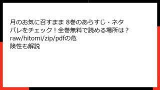 少女マンガ 月のお気に召すまま 8巻のあらすじ・ネタバレをチェック!全巻無料で読める場所は?raw/hitomi/zip/pdfの危険性も解説 月のお気に召すまま 8巻:ついに訪れた両想いの瞬間! 詳細あらすじと感想 みなさん、こんにちは! 少女漫画好きのブロガーです。今日は、木内ラムネ先生の人気作『月のお気に召すまま』8巻の詳細あらすじをお届けします。この巻は、物語の大きな転機を... 2025.12.15 少女マンガ月のお気に召すまま