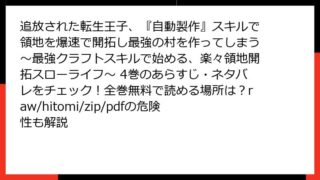 少年マンガ 追放された転生王子、『自動製作』スキルで領地を爆速で開拓し最強の村を作ってしまう~最強クラフトスキルで始める、楽々領地開拓スローライフ~ 4巻のあらすじ・ネタバレをチェック!全巻無料で読める場所は?raw/hitomi/zip/pdfの危険性も解説