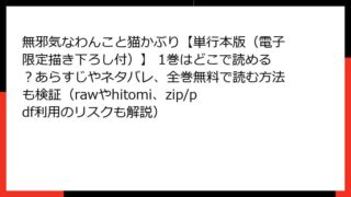 BLマンガ 無邪気なわんこと猫かぶり【単行本版(電子限定描き下ろし付)】 1巻はどこで読める?あらすじやネタバレ、全巻無料で読む方法も検証(rawやhitomi、zip/pdf利用のリスクも解説) 無邪気なわんこと猫かぶり 1巻のあらすじを徹底解説!心温まるBLストーリーの魅力に迫る こんにちは、漫画好きの皆さん! 今日は、にやま先生の人気BL作品『無邪気なわんこと猫かぶり』単行本版(電子限定描き下ろし付)1巻のあらすじを、ネタバレを... 2025.12.15 BLマンガ無邪気なわんこと猫かぶり【単行本版(電子限定描き下ろし付)】