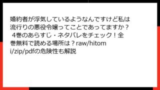 女性マンガ 婚約者が浮気しているようなんですけど私は流行りの悪役令嬢ってことであってますか? 4巻のあらすじ・ネタバレをチェック!全巻無料で読める場所は?raw/hitomi/zip/pdfの危険性も解説