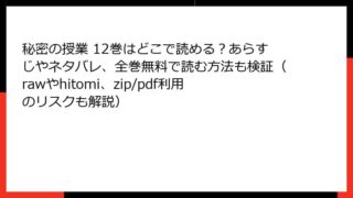 秘密の授業 秘密の授業 12巻はどこで読める?あらすじやネタバレ、全巻無料で読む方法も検証(rawやhitomi、zip/pdf利用のリスクも解説) 秘密の授業 12巻 詳細あらすじとネタバレ 物語の背景と12巻の位置づけ 『秘密の授業』は、性知識に疎い青年・真中俊太が、結城家の美女たち(養母の真理子、義姉の飛鳥と葉月)から「秘密の授業」と称した性教育を受け、次第に欲望を解放していく禁断... 2025.12.16 秘密の授業青年マンガ