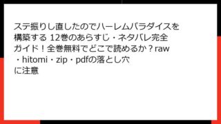 ステ振りし直したのでハーレムパラダイスを構築する ステ振りし直したのでハーレムパラダイスを構築する 12巻のあらすじ・ネタバレ完全ガイド!全巻無料でどこで読めるか?raw・hitomi・zip・pdfの落とし穴に注意 『ステ振りし直したのでハーレムパラダイスを構築する』第12巻 詳細あらすじ 作品概要とこれまでの流れ この作品は、大学生活を舞台にしたハーレムラブコメディで、主人公・淀見琉太が突然手に入れた「ステータス確認&振り直し」能力を駆使して、サーク... 2025.12.17 ステ振りし直したのでハーレムパラダイスを構築する青年マンガ