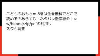 こどものおもちゃ こどものおもちゃ 8巻は全巻無料でどこで読める?あらすじ・ネタバレ徹底紹介|raw/hitomi/zip/pdfの利用リスクも調査 こどものおもちゃ 8巻 あらすじ詳解 人気少女漫画「こどものおもちゃ」の8巻は、ドラマチックな展開が続き、キャラクターたちの心の葛藤が深く描かれています。この巻では、主要人物である羽山や小森の危機が物語の中心となり、友情や愛情の絆が試されま... 2025.12.18 こどものおもちゃ少女マンガ