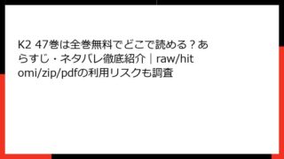K2 K2 47巻は全巻無料でどこで読める?あらすじ・ネタバレ徹底紹介|raw/hitomi/zip/pdfの利用リスクも調査 『K2』第47巻 親子の絆と村の騒動を描く感動の物語 巻全体の概要 『K2』第47巻は、シリーズの重要な脇役である高品龍一とその息子・高品龍太郎の親子関係にスポットを当てた一冊です。医療界の重鎮として君臨する高品龍一が、長年こじれていた息子... 2025.12.18 K2青年マンガ