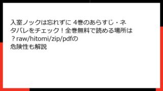 BLマンガ 入室ノックは忘れずに 4巻のあらすじ・ネタバレをチェック!全巻無料で読める場所は?raw/hitomi/zip/pdfの危険性も解説 入室ノックは忘れずに 4巻のあらすじ詳細 人気の男子寮を舞台にしたBLラブコメシリーズ「入室ノックは忘れずに」の4巻は、シリーズの魅力が詰まった一冊です。ケンカップルを中心に、甘さとコメディがバランスよく描かれています。以下では、ストーリー... 2025.12.20 BLマンガ入室ノックは忘れずに