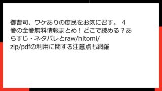 女性マンガ 御曹司、ワケありの庶民をお気に召す。 4巻の全巻無料情報まとめ!どこで読める?あらすじ・ネタバレとraw/hitomi/zip/pdfの利用に関する注意点も網羅 御曹司、ワケありの庶民をお気に召す。 4巻のあらすじ詳解 この記事では、人気漫画「御曹司、ワケありの庶民をお気に召す。」の4巻に焦点を当てて、詳細なあらすじを解説します。格差恋愛の魅力が詰まったストーリーが、さらに深みを増す巻です。ネタバレ... 2025.12.21 女性マンガ御曹司、ワケありの庶民をお気に召す。