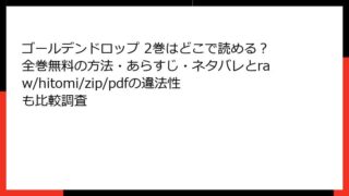 ゴールデンドロップ ゴールデンドロップ 2巻はどこで読める?全巻無料の方法・あらすじ・ネタバレとraw/hitomi/zip/pdfの違法性も比較調査 ゴールデンドロップ 2巻 あらすじ 今回は、人気漫画『ゴールデンドロップ』の第2巻について、詳細なあらすじをブログ記事風にまとめていきます。この巻では、主人公たちが手に入れた大量の覚醒剤を巡る危険な世界がさらに深掘りされ、緊張感あふれる展開... 2025.12.23 ゴールデンドロップ青年マンガ