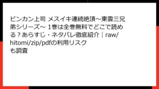 BLマンガ ビンカン上司 メスイキ連続絶頂~東雲三兄弟シリーズ~ 1巻は全巻無料でどこで読める?あらすじ・ネタバレ徹底紹介|raw/hitomi/zip/pdfの利用リスクも調査 ビンカン上司 メスイキ連続絶頂~東雲三兄弟シリーズ~ 1巻のあらすじ詳解 この記事では、千桜先生によるBLコミック「ビンカン上司 メスイキ連続絶頂~東雲三兄弟シリーズ~」の1巻について、詳細なあらすじを掘り下げて紹介します。エロティックでフ... 2025.12.23 BLマンガビンカン上司 メスイキ連続絶頂~東雲三兄弟シリーズ~