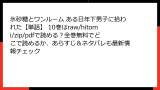 女性マンガ 氷砂糖とワンルーム ある日年下男子に拾われた【単話】 10巻はraw/hitomi/zip/pdfで読める?全巻無料でどこで読めるか、あらすじ&ネタバレも最新情報チェック 氷砂糖とワンルーム ある日年下男子に拾われた【単話】10巻のあらすじ詳解 この記事では、加藤朱々による人気マンガ「氷砂糖とワンルーム ある日年下男子に拾われた」の単話版10巻について、詳しいあらすじをブログ形式でまとめます。心温まるラブスト... 2025.12.24 女性マンガ氷砂糖とワンルーム ある日年下男子に拾われた【単話】