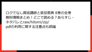 ロクでなし魔術講師と禁忌教典 ロクでなし魔術講師と禁忌教典 8巻の全巻無料情報まとめ!どこで読める?あらすじ・ネタバレとraw/hitomi/zip/pdfの利用に関する注意点も網羅 ロクでなし魔術講師と禁忌教典 第8巻 あらすじ詳解 人気ファンタジー漫画「ロクでなし魔術講師と禁忌教典」の第8巻は、激しい戦いの余波から始まる新たな冒険を描いた一冊です。この巻では、主人公グレンの意外な危機と、それを乗り越えるための遺跡探索... 2025.12.25 ロクでなし魔術講師と禁忌教典少年マンガ