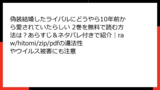 偽装結婚したライバルにどうやら10年前から愛されていたらしい 偽装結婚したライバルにどうやら10年前から愛されていたらしい 2巻を無料で読む方法は?あらすじ&ネタバレ付きで紹介|raw/hitomi/zip/pdfの違法性やウイルス被害にも注意