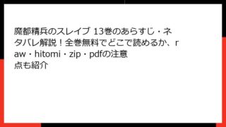 少年マンガ 魔都精兵のスレイブ 13巻のあらすじ・ネタバレ解説!全巻無料でどこで読めるか、raw・hitomi・zip・pdfの注意点も紹介 この漫画・コミックの、ネタバレ情報を詳しく。単一のの見出しタグから始めて、ブログ記事形式で出力して。複数のタグを使用して、読み応えがあるように。HTMLで出力。やなどの箇条書きのHTMLタグや、tableタグも使用してOK。ただし、リンクや... 2025.12.27 少年マンガ魔都精兵のスレイブ