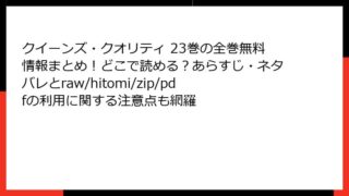 クイーンズ・クオリティ クイーンズ・クオリティ 23巻の全巻無料情報まとめ!どこで読める?あらすじ・ネタバレとraw/hitomi/zip/pdfの利用に関する注意点も網羅 この漫画・コミックの、ネタバレ情報を詳しく。単一のの見出しタグから始めて、ブログ記事形式で出力して。複数のタグを使用して、読み応えがあるように。HTMLで出力。やなどの箇条書きのHTMLタグや、tableタグも使用してOK。ただし、リンクや... 2025.12.28 クイーンズ・クオリティ少女マンガ