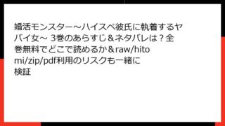 女性マンガ 婚活モンスター~ハイスペ彼氏に執着するヤバイ女~ 3巻のあらすじ&ネタバレは?全巻無料でどこで読めるか&raw/hitomi/zip/pdf利用のリスクも一緒に検証 婚活モンスター~ハイスペ彼氏に執着するヤバイ女~ 3巻のあらすじ詳解 今回は、人気コミック「婚活モンスター~ハイスペ彼氏に執着するヤバイ女~」の3巻について、詳しくあらすじを掘り下げてみましょう。この巻では、主人公の朱音とその恋人・大貴の関... 2025.12.30 女性マンガ婚活モンスター~ハイスペ彼氏に執着するヤバイ女~
