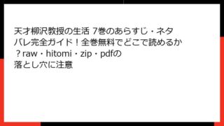 天才柳沢教授の生活 天才柳沢教授の生活 7巻のあらすじ・ネタバレ完全ガイド!全巻無料でどこで読めるか?raw・hitomi・zip・pdfの落とし穴に注意 落日のパトス 15巻 『落日のパトス』は、青春の葛藤と人間関係の複雑さを描いた人気漫画シリーズです。この15巻では、主人公たちの関係がさらに深みを増し、過去のトラウマが現在に影を落とす展開が繰り広げられます。作者の繊細な心理描写が光る一冊で... 2026.01.03 天才柳沢教授の生活青年マンガ