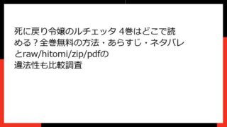 少女マンガ 死に戻り令嬢のルチェッタ 4巻はどこで読める?全巻無料の方法・あらすじ・ネタバレとraw/hitomi/zip/pdfの違法性も比較調査 サクラ、サク。 5巻 この漫画・コミックの、あらすじを詳しく。単一のの見出しタグから始めて、ブログ記事形式で出力して。複数のタグを使用して、読み応えがあるように。HTMLで出力。やなどの箇条書きのHTMLタグや、tableタグも使用してOK... 2026.01.03 少女マンガ死に戻り令嬢のルチェッタ