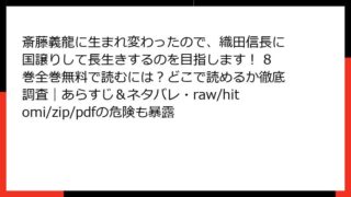 少年マンガ 斎藤義龍に生まれ変わったので、織田信長に国譲りして長生きするのを目指します! 8巻全巻無料で読むには?どこで読めるか徹底調査|あらすじ&ネタバレ・raw/hitomi/zip/pdfの危険も暴露 カラダ探し 2巻の詳細なあらすじ ホラー要素満載のサバイバルストーリー、『カラダ探し』の第2巻では、主人公たちの恐怖がさらに深まります。夜の学校を舞台に、遥のバラバラになった体を探す強制的なゲームが続き、赤い人との追跡劇がスリリングに展開し... 2026.01.04 少年マンガ斎藤義龍に生まれ変わったので、織田信長に国譲りして長生きするのを目指します!