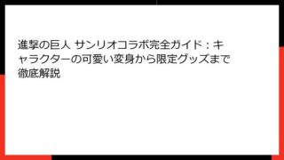 【進撃の巨人】最強ランキング完全ガイド!人類最強から九つの巨人まで徹底解説【ネタバレ注意】 『進撃の巨人』は、諫山創による壮大なダークファンタジー漫画であり、2009年の連載開始から2021年の完結まで、世界中のファンを熱狂させ続けた伝説的...