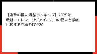進撃の巨人 【進撃の巨人 最強ランキング】2025年最新!エレン、リヴァイ、九つの巨人を徹底比較する究極のTOP20
