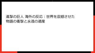進撃の巨人の主題歌:アニメを彩る壮大な音楽の世界 「進撃の巨人」は、諫山創による漫画を原作としたアニメ作品であり、その壮大な物語と緻密な世界観で世界中のファンを魅了してきました。 2013年の初放送以来、シーズンを重ねるごとにその人気は拡大...
